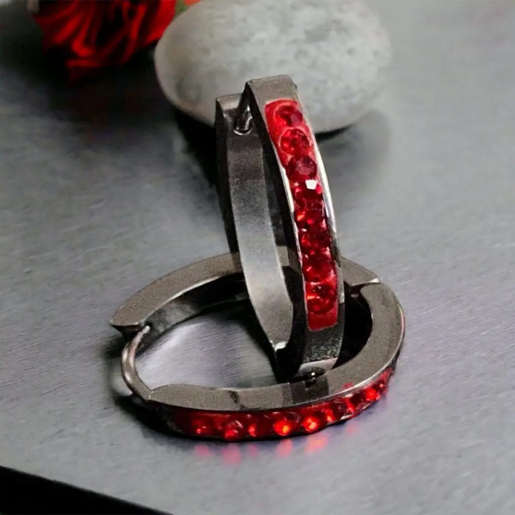 Ketrin piros köves ezüst színű nemesacél fülbevaló