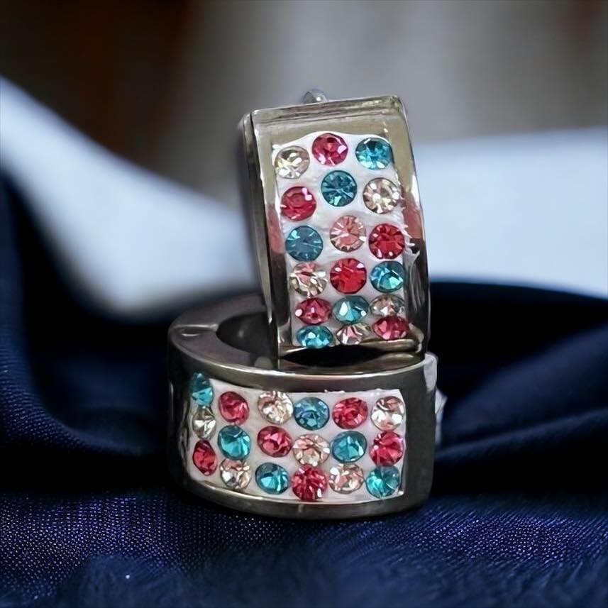 Kim kék-ezüst-rózsaszín köves ezüst színű nemesacél fülbevaló