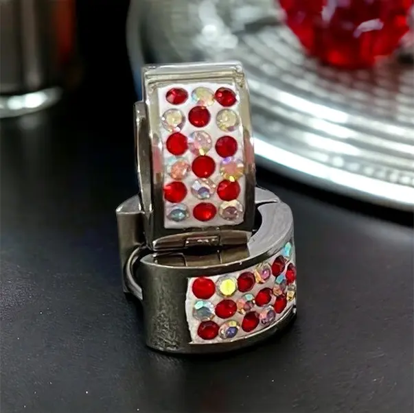 Kim piros-szivárvány köves ezüst színű nemesacél fülbevaló