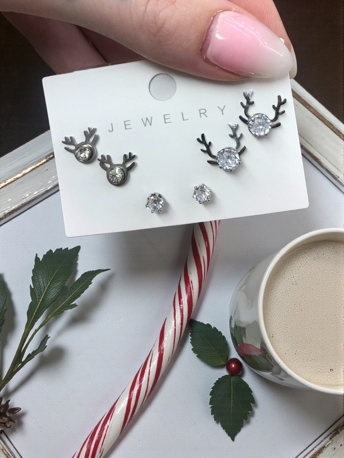 Szarvasok ezüst színű nemesacél fülbevaló szettben