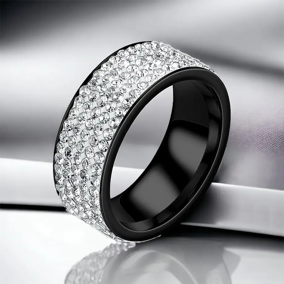 Hanna fekete színű apró köves nemesacél gyűrű