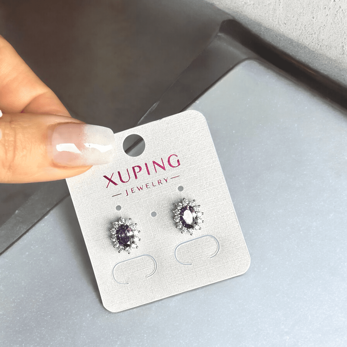 Kriszta ezüst-lila színű köves antiallergén xuping fülbevaló