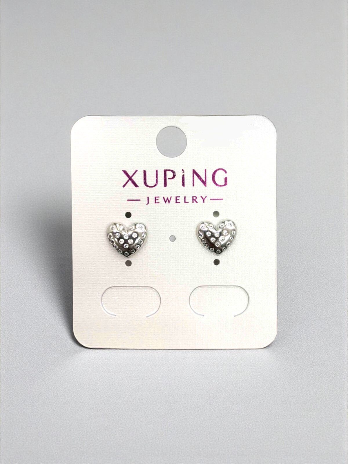 Szív ezüst színű antiallergén köves xuping fülbevaló